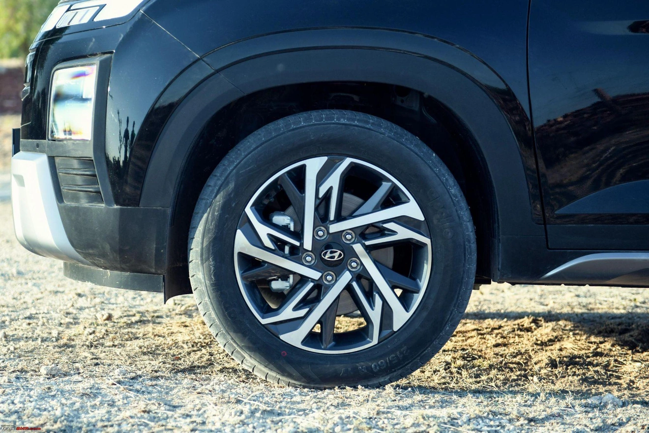 Phiên bản N-Line tỏ rõ phong cách thể thao và cá tính qua nhiều điểm nhấn như mặt ca-lăng phân tầng dạng lưới tổ ong, đường chỉ màu đỏ tương phản bao quanh xe, cánh lướt gió cỡ lớn. Cùm phanh cũng được sơn màu đỏ, lấp ló sau “dàn chân” 18 inch. Hãng xe Hàn Quốc còn dành riêng màu xanh đậm Thunder Blue cho Creta N-Line.
